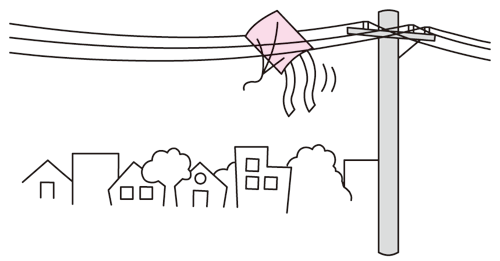 また、凧あげやラジコン飛行機遊びは、電線の近くでしないようお願い致します。