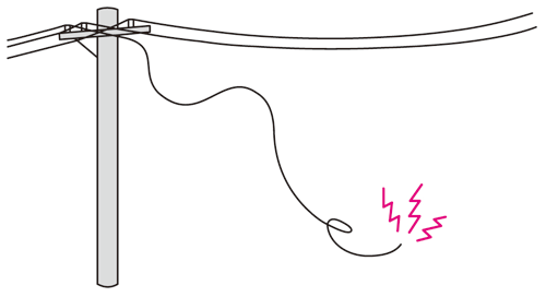 切れた電線にはさわらないでください