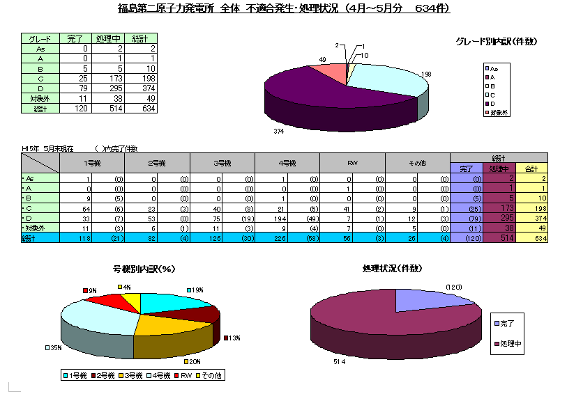 当発電所における不適合の発生と是正活動状況について、平成15年4月、5月の不適合管理委員会での審議状況をお知らせいたします。