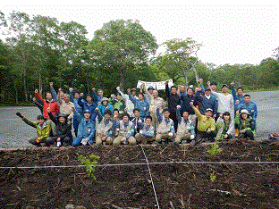 この日は、時折、雨に見舞われながらも、参加者は一本一本丁寧に苗木を植えていました。参加した尾瀬高校の生徒は「植えた苗木は、これからも大切に育てていきたい」と話していました。また、植栽した場所の近くには、入山者が入山前の事前学習や準備体操ができるよう、スペースを確保し、これまでの整備を通して、車と入山者が入り乱れ、混雑していた入山口から静かで落ち着いた入山口へと移り変わりました。参加した地元の片品村役場の方も「車の乗り入れがなくなり、安全が確保された入山口となって良かった」と感想を述べていました。